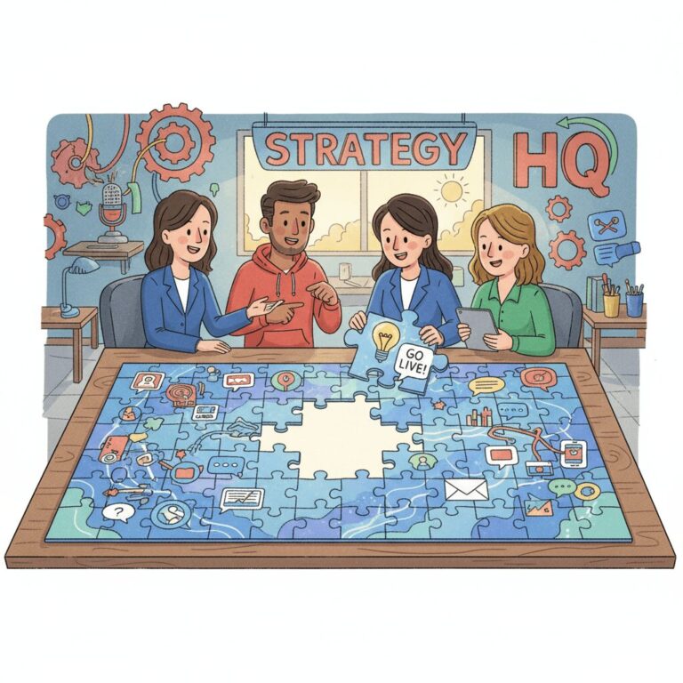 PR戦略フレームワークで成果を出す!初心者向けに3C/SWOT, STP, PESO, 4P/4Cの厳選4つを解説。4ステップで戦略を立て、広報活動を成功させましょう。