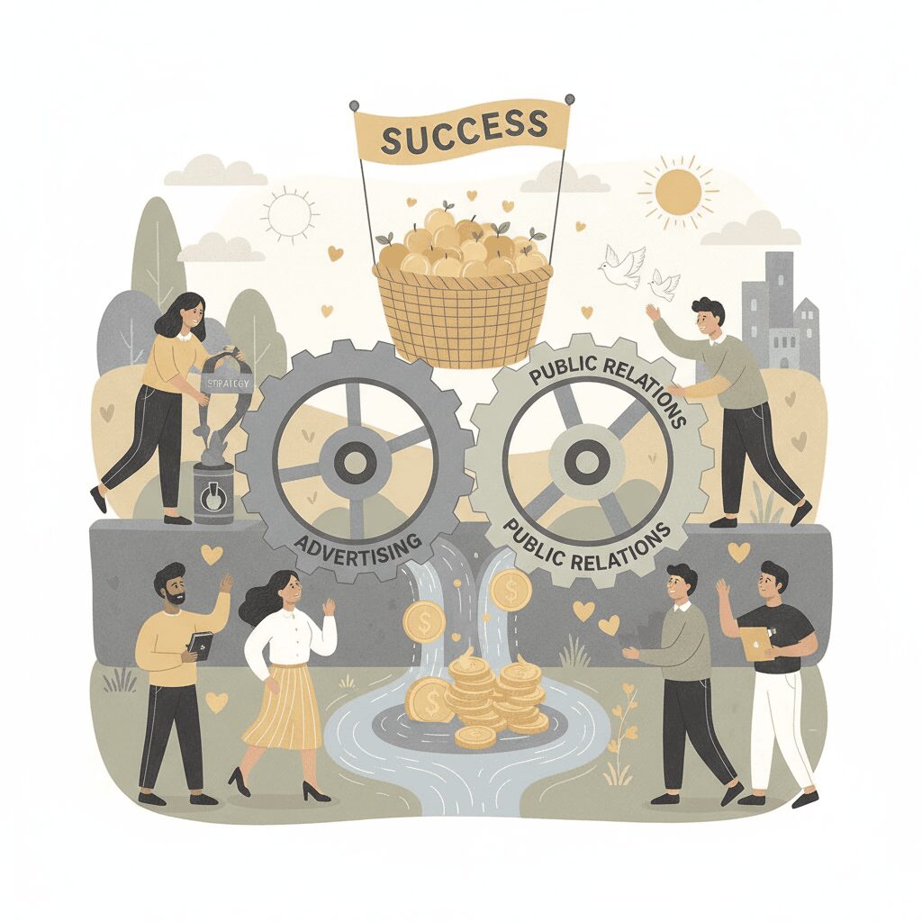 広告とPRは、対立するものでも、どちらか一方を選ぶものでもありません。広告の「攻める力」とPRの「信頼を作る力」を車の両輪のように回すことで、初めてマーケティングの成果は最大化されます。まずは自社の課題が「認知」にあるのか「獲得」にあるのかを見極め、今日紹介した組み合わせパターンを参考に、小さな一歩から連携を始めてみてください。